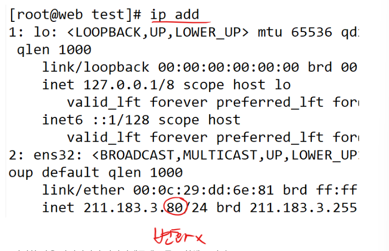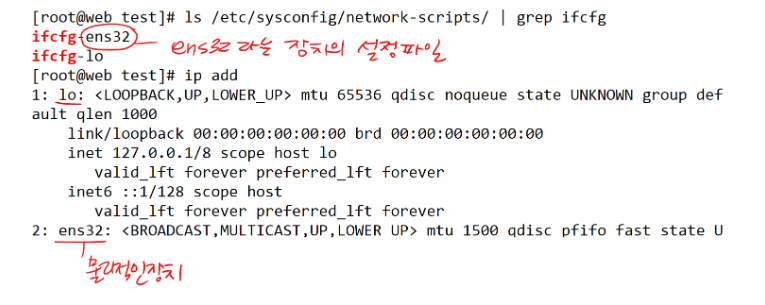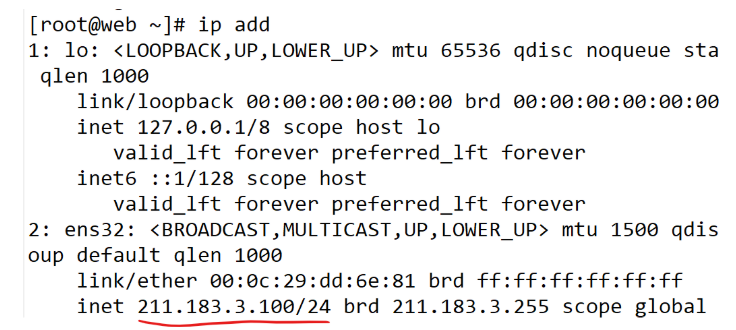 [root@web ~]# vi /etc/sysconfig/network-scripts/ifcfg-ens32