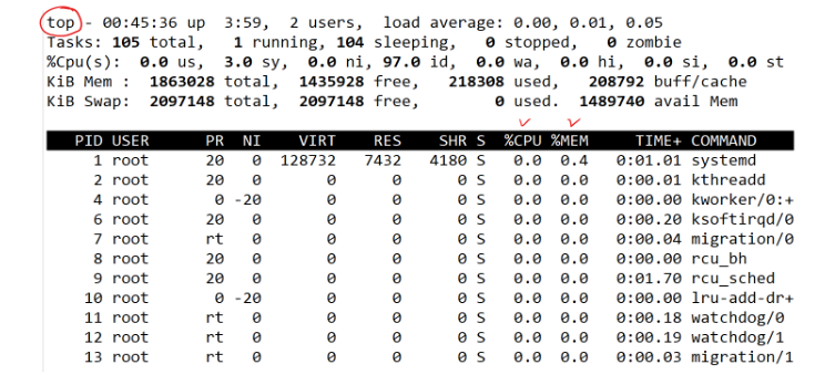 - top라는 명령어를 치면 현재 내 리소스에 대한 실시간 정보가 뜬다(윈도우의 작업관리자).