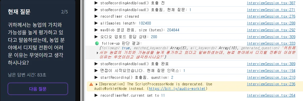 | 분기 기준 | matched_keywords의 길이가 2 이상이면 꼬리질문 진행 |