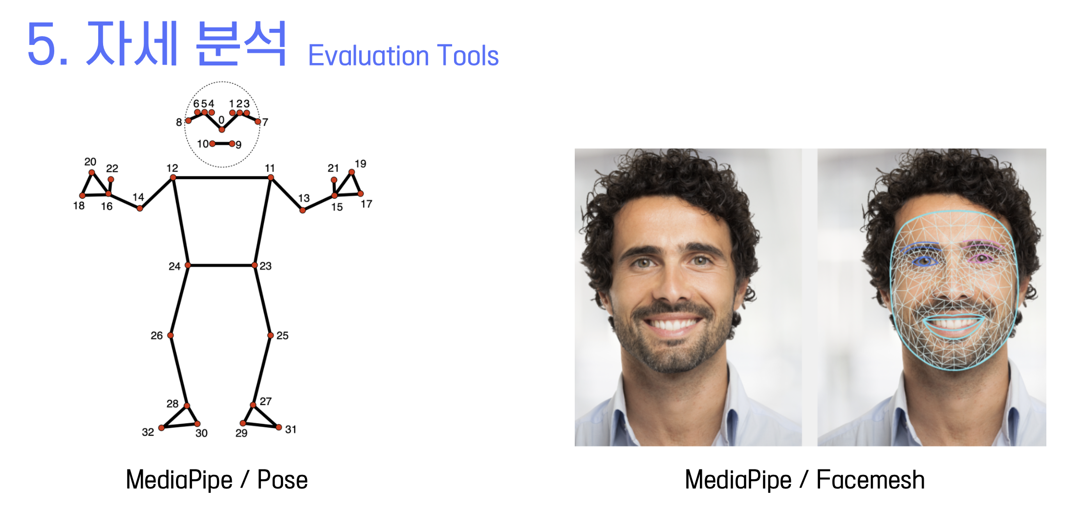 | mediapipe | 사람의 관절(포즈)를 인식하는 모델 제공 | Google에서 제공하는 lightweight 딥러닝 기반 포즈 추정 라이브러리로, 33개 관절 좌표를 실시간으로 추출할 수 있습니다. OpenPose보다 가볍고, 웹캠 기반 서비스에 적합하여 선택했습니다. |