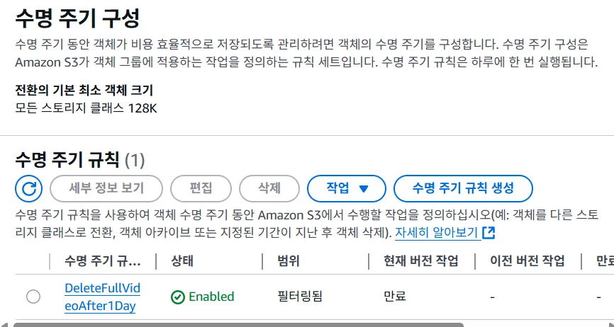 ✅ 전체 영상 저장 + 수명 주기(Lifecycle Policy)로 자동 삭제
