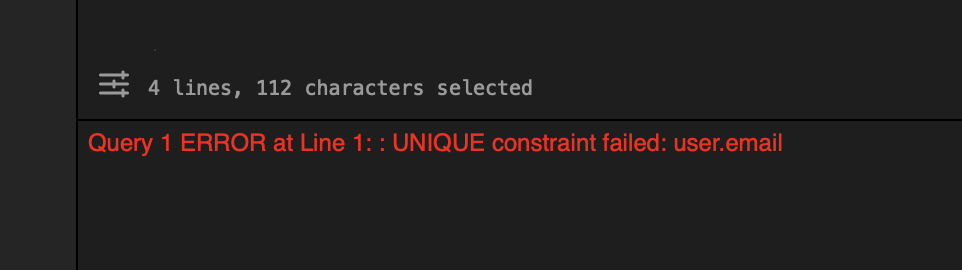 - 아래처럼 이메일을 중복시킨 코드를 넣는다면