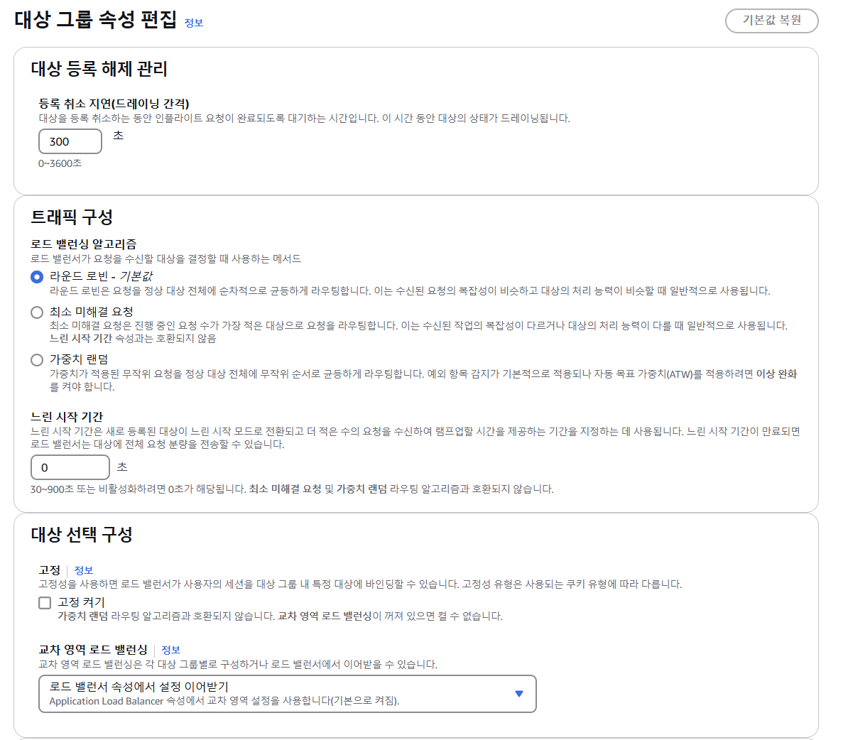 - Auto Scaling 축소, 수동 제거 등으로 인스턴스가 타겟 그룹에서 등록 취소 될 때, 해당 인스턴스로 더 이상 새로운 요청을 보내지 않도록 하는 기능
