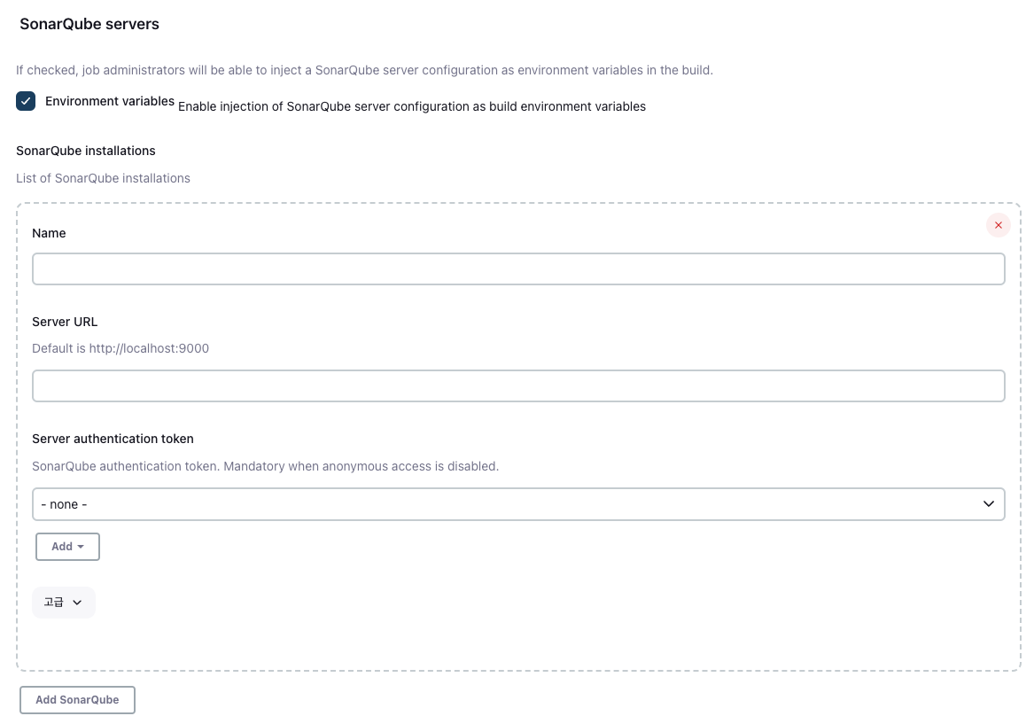 사용할 SonarQube server 설정