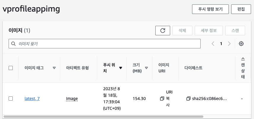 → Amazon ECR에 이미지가 업로드된 것을 확인할 수 있다.