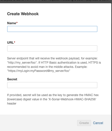 SonarQube 서버가 Jenkins으로 정보를 보내기 위해 webhook 설정