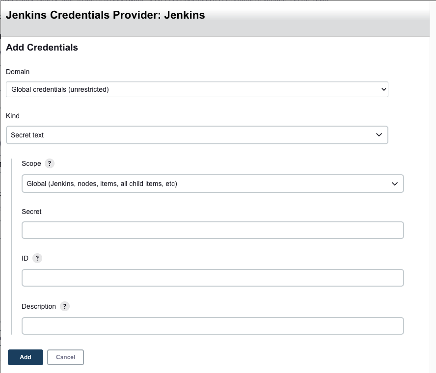 자격 증명 생성 - secret text에 Slack token 입력