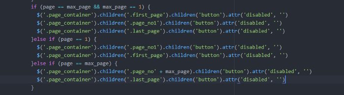 페이지네이션을 전면적으로 수정했다. 기존에는 모든페이지를 생성하고 그 페이지의 클래스에 display : none을 주었다. 그리고 현재 페이지를 기준으로 앞 뒤의 페이지를 removeClass()를 사용해서 원하는 페이지만 보이는 방식이였다.