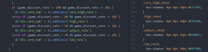 할인율에 따라서 카드 외부의 glow이펙트를 다르게 주었다.