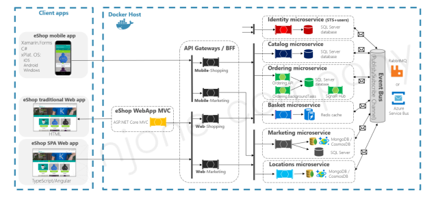 그밖에도 api gateways 를 통해서 다양한 domain microservice 로 통신하게 됩니다.