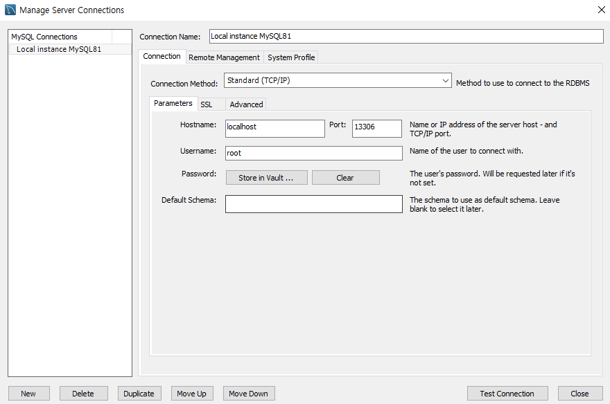 host pc 에서 컨테이너에 접근할때는 3306으로 접근해준다.