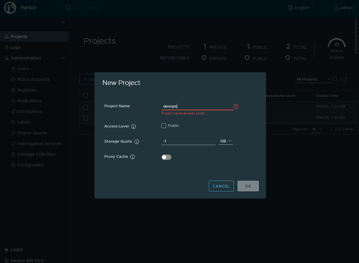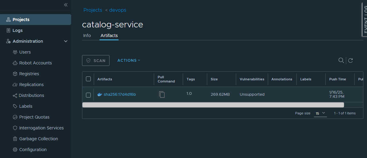 docker push 192.xxx.x.x/devops/catalog-service:1.0 // harbor registry 에 푸시, root (admin)