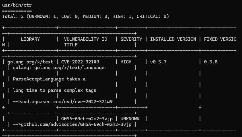 그림에서 recommadations 명령어를 통해 상태값을 확인해준 다음에 trivy 명령어 를 통해 분석 결과를 통해 패키지의 라이브러리의 문제점과 수정된 버전을 확인 할 수 있습니다.
