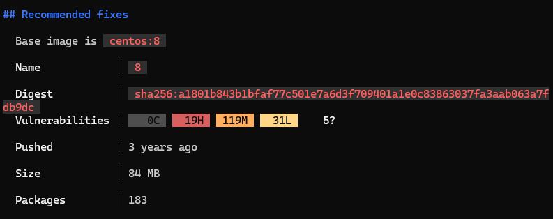이렇듯 registry 에서의 image 를 그대로 사용하기 보다는 해당 명령어를 통해 검사 후 수정이 필요하면 수정 후 실행하는 것이 좋을 것 같습니다.