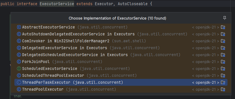 참고로 ExecutorService 인터페이스의 기본 구현체는 ThreadPoolExecutor 입니다.