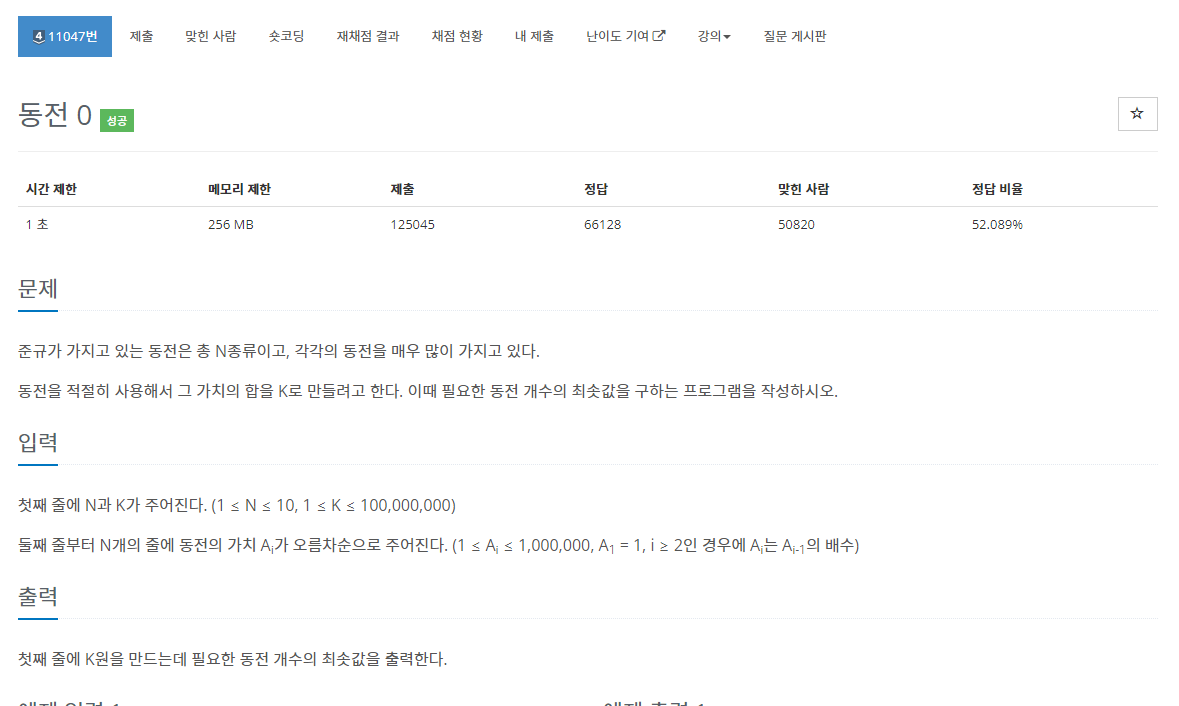 이 문제에서 그리디 알고리즘의 특징은 가장 큰단위의 동전부터 선택하여 계산하는 부분이다.