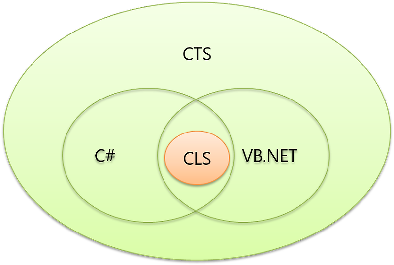 CLS, CTS와 닷넷 호한 언어의 관계를 다이어그램으로 정리하면 다음과 같다.
