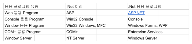 닷넷 응용 프로그램은 기존의 모든 원도우 응용 프로그램에 대응해서 만들 수 있다. 즉, Visual C++로 만든 네이티브 프로그램이 있다면 .Net으로도 제작할 수 있다. 다음은 이에 대한 좀 더 세분화된 응용 프로그램 유형을 보여준다.