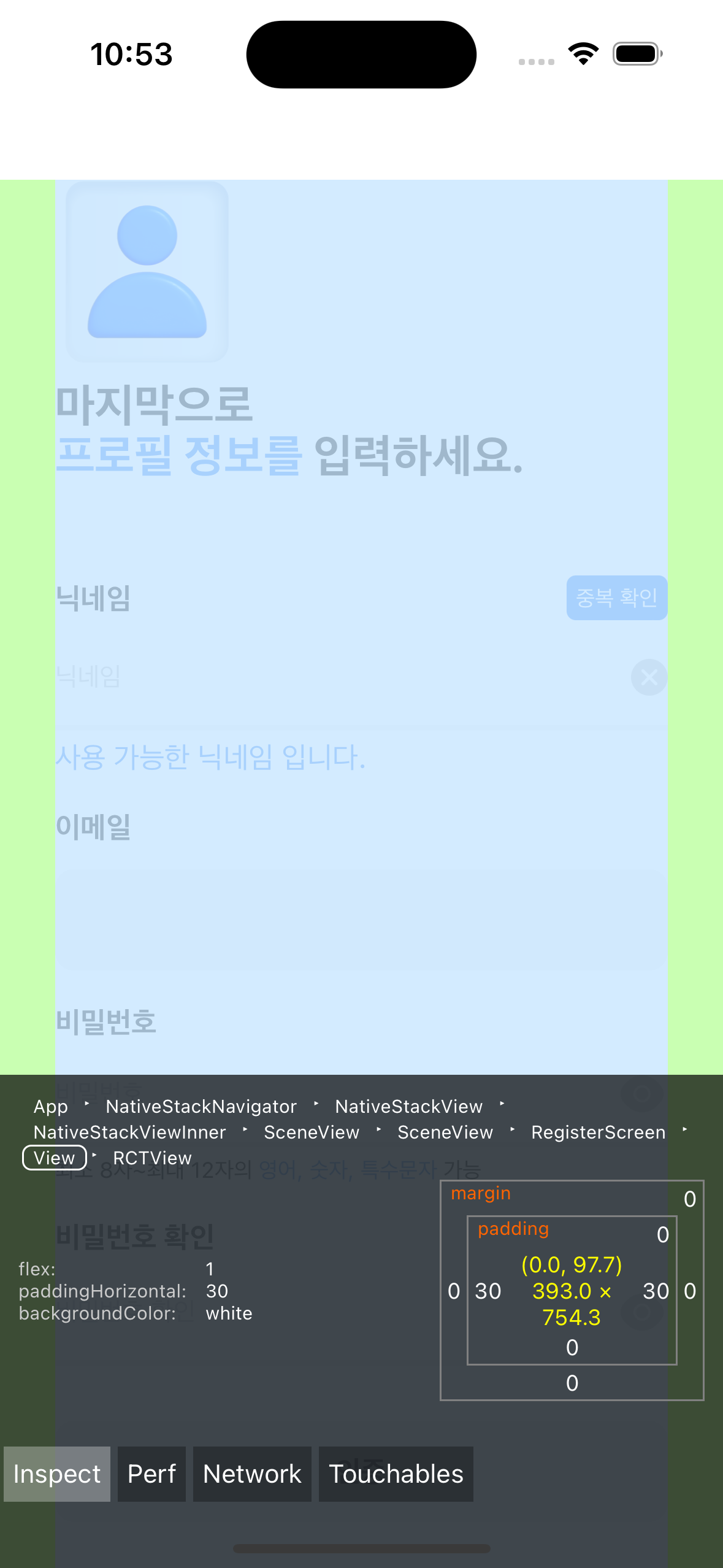 이 이슈는 Navigation header 가 존재하여 SafeAreaView 와 같은 노치 가림 방지 효과가 자동적으로 적용이 됐는데, 내부 View에서도 SafeAreaView 컴포넌트를 사용해서 노치 가림 방지 효과가 자동적으로 적용이 되어 이중 노치 가림 방지 효과 로 인한 스타일링이 적용된 이슈였습니다.