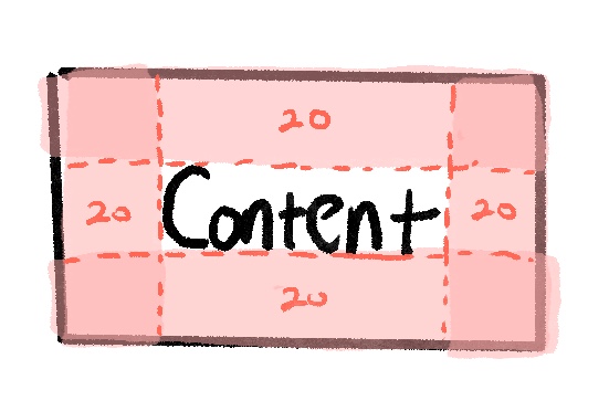 모든 코드 블록은 내부에 들어있는 개체와 개체를 둘러싼 패딩으로 만들어지는데 이 말은 즉, 우리가 만드는 UI의 크기 = 개체의 크기 + 패딩이라는 것이다!