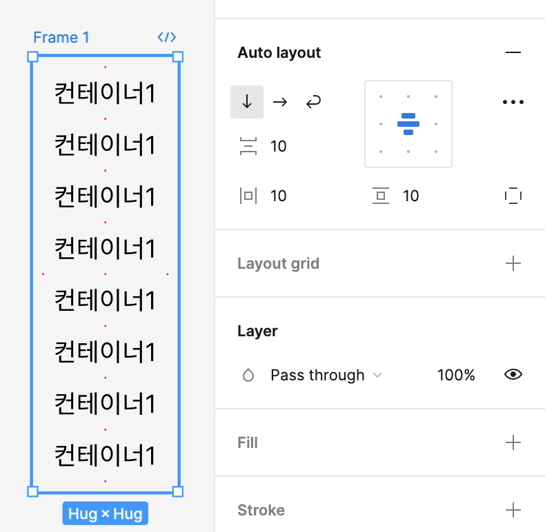 프레임이 아닌 개체에 오토레이아웃을 적용하면 기본 패딩 값을 가진 오토레이아웃 컨테이너가 생성된다