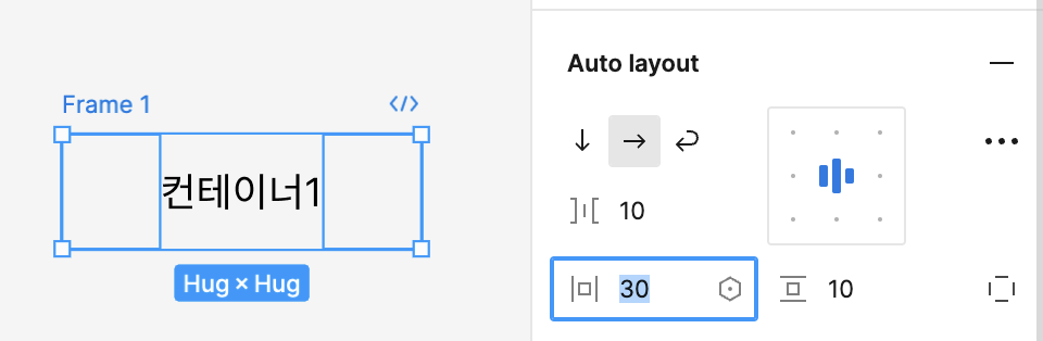 이미 만들어진 프레일에 오토레이아웃을 적용하면 프레임 자체가 오토레이아웃으로 변경되면서 기본 패딩 값이 없이 컨테이너가 생성된다
