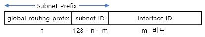 서브넷 프리픽스 안에 글로벌 라우팅 프리픽스와 서브넷 ID를 나누어 서브네팅을 수행한다.