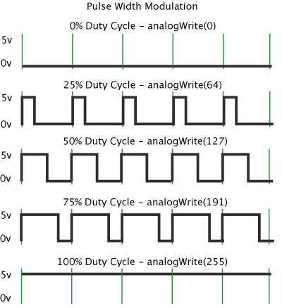 그렇다고 0, 1 이외의 값을 줄 수는 없고 신호를 주는 시간을 이용해서 아날로그를 흉내내는 것이다.