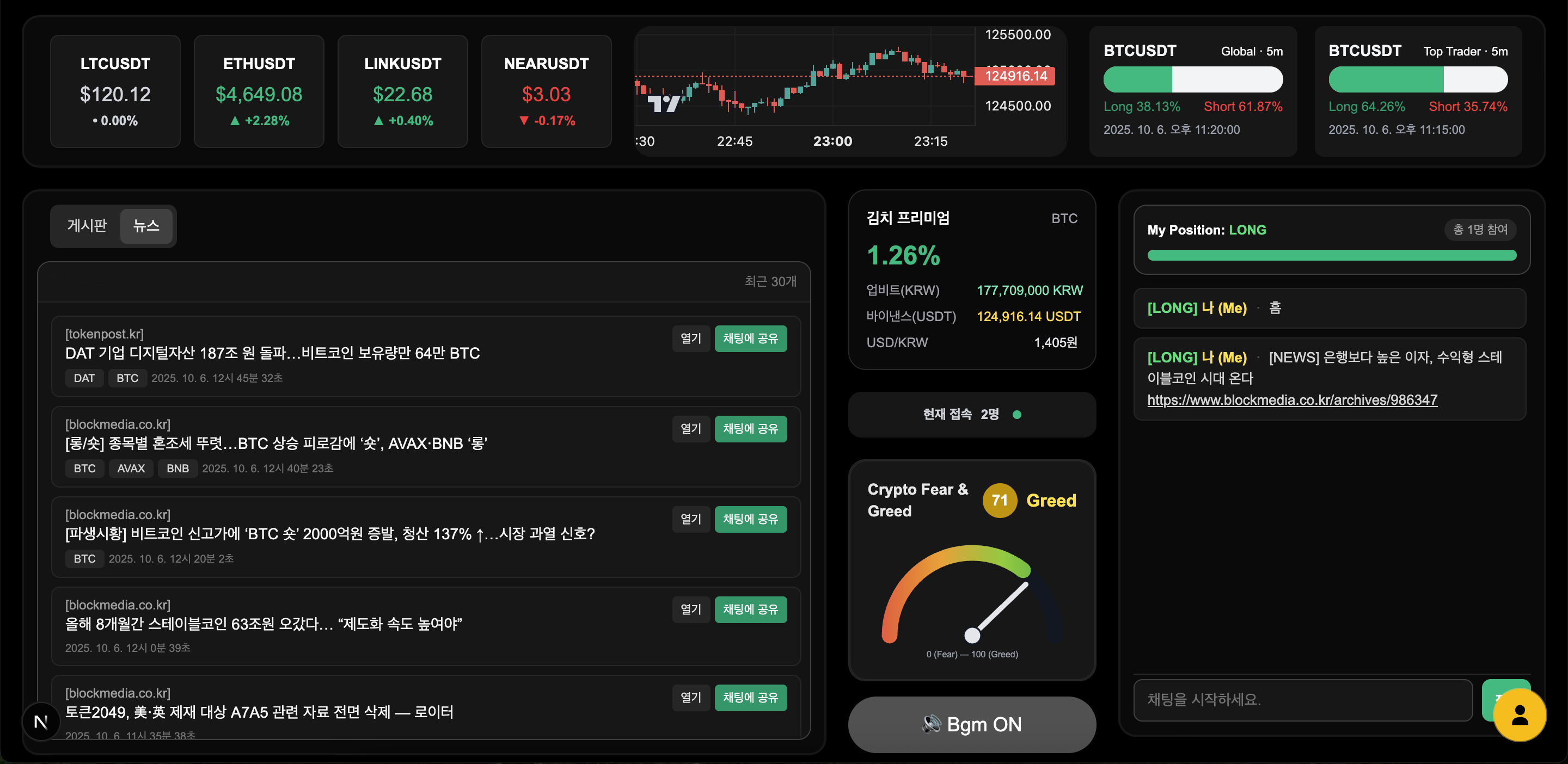 기존 로그인 자리를 김치 프리미엄을 보여주고 싶어