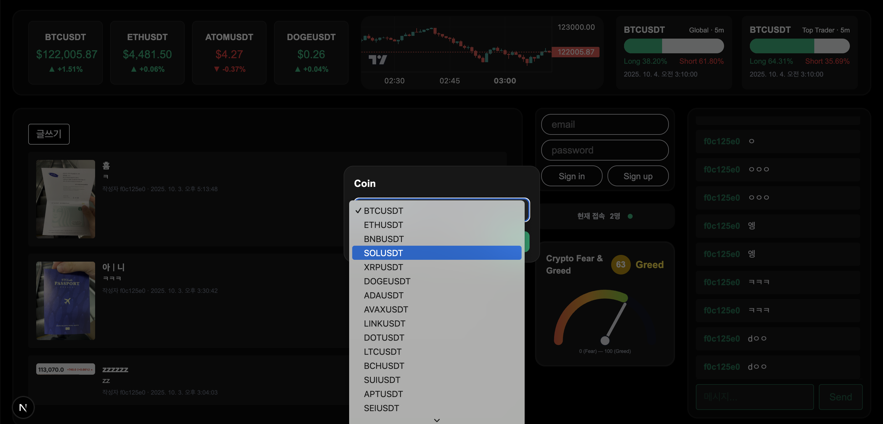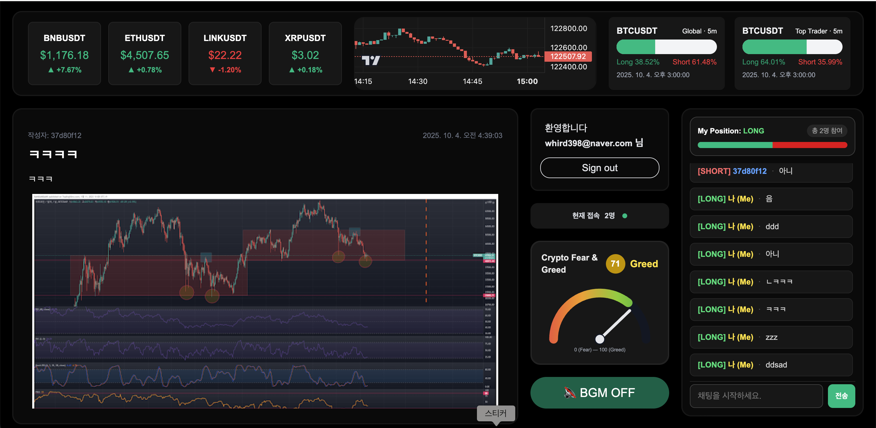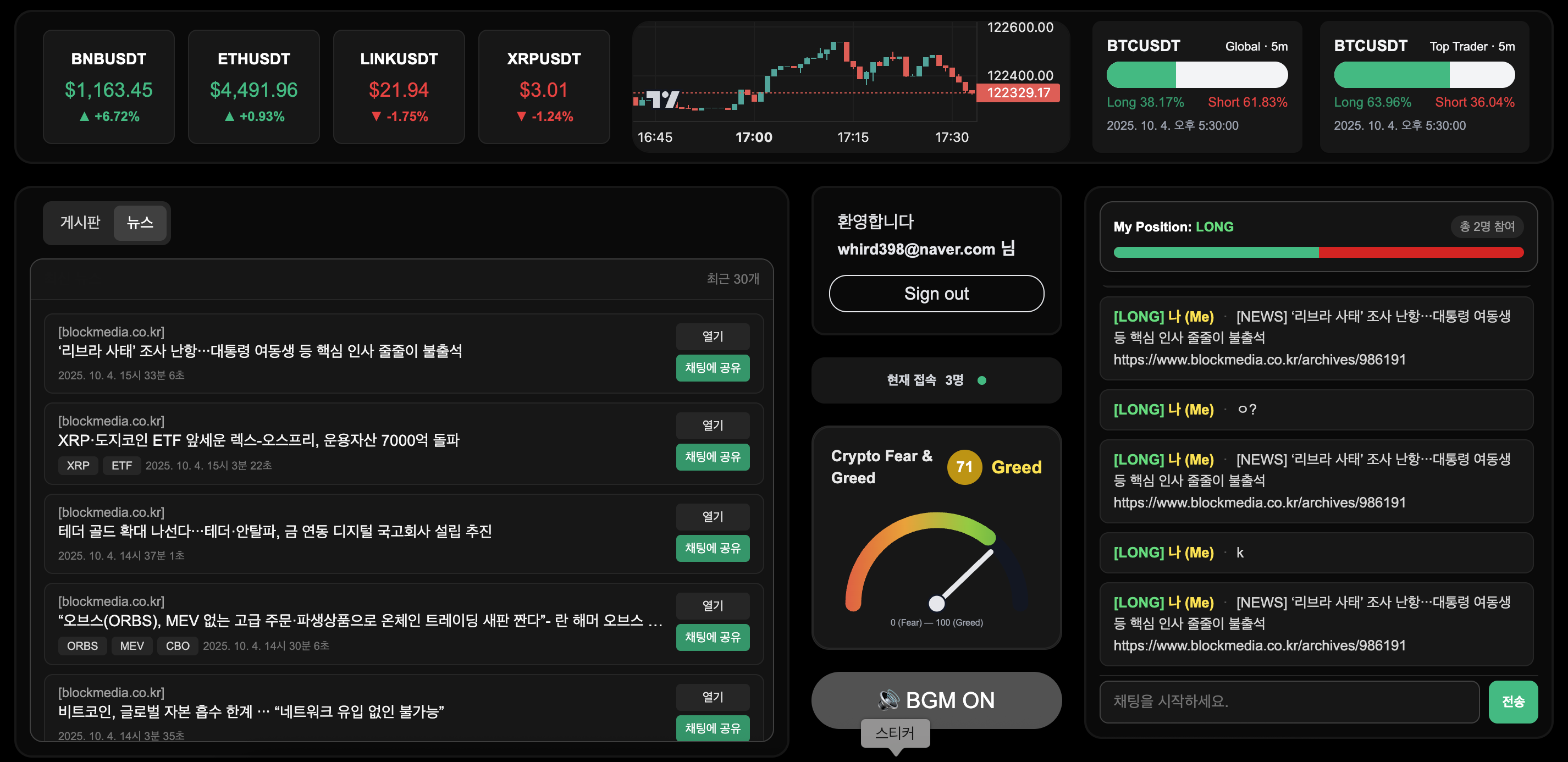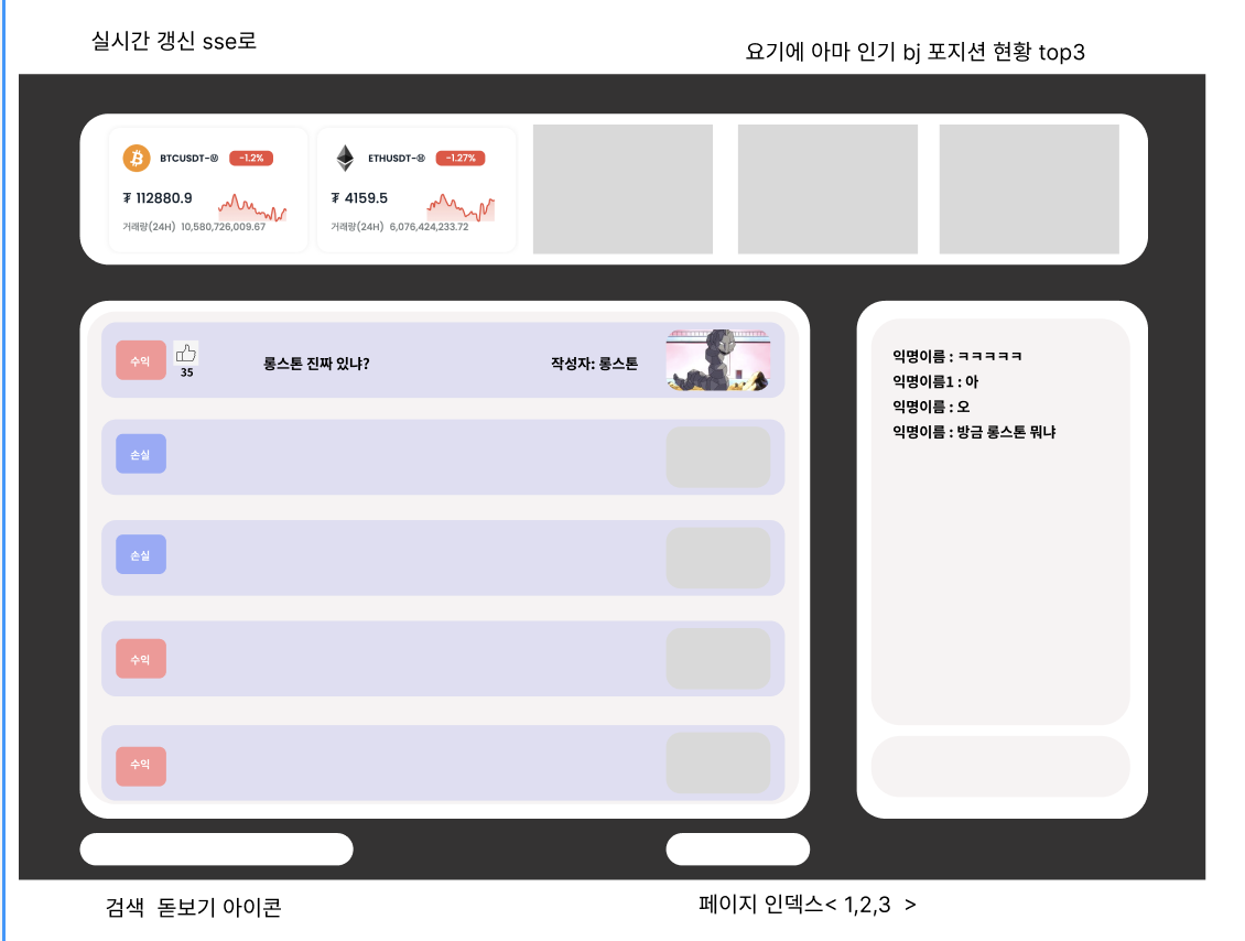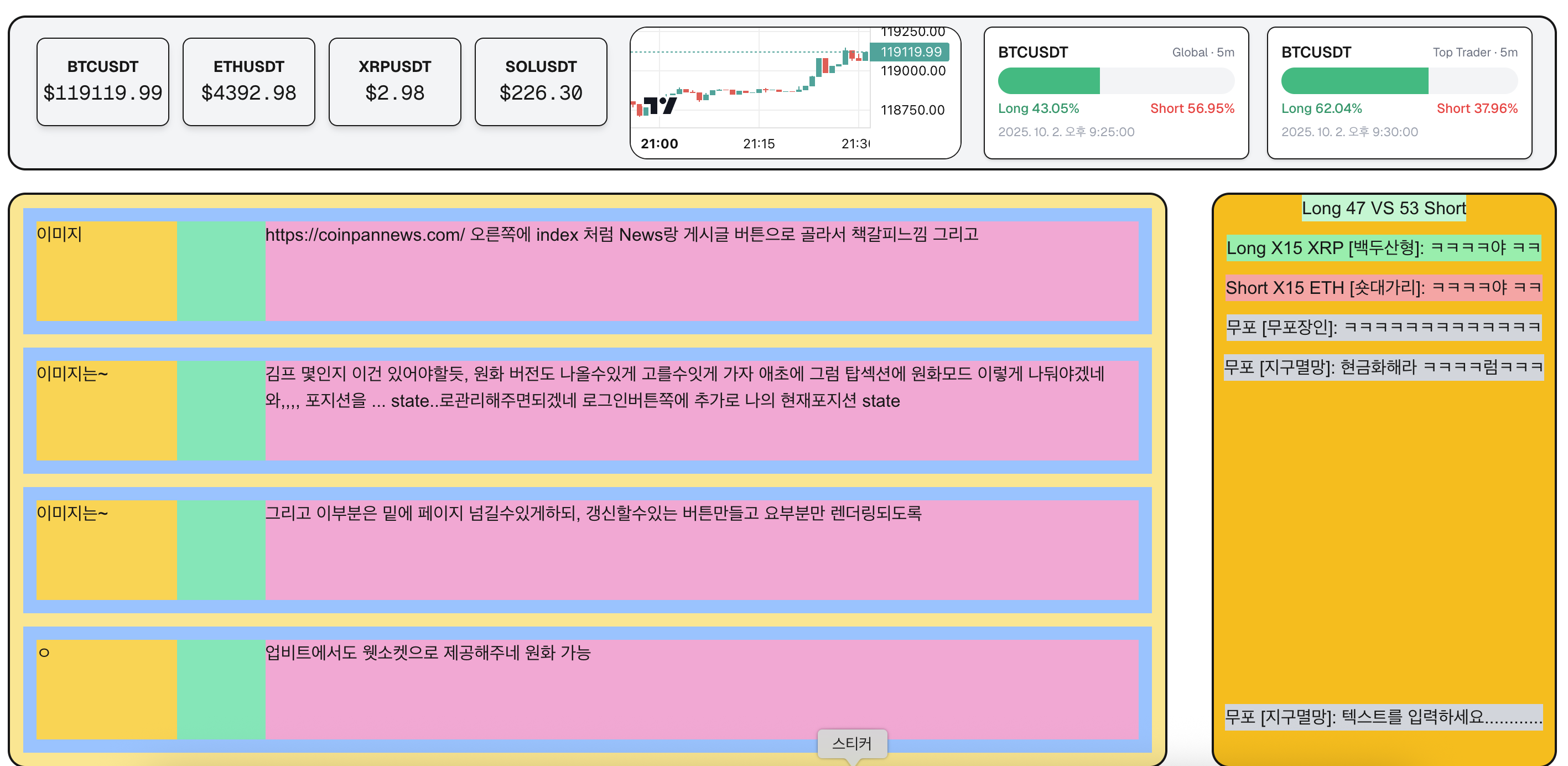 실시간 포지션, 배율, 코인, 닉네임 설정하는 공간 + 메인로고 등 생각중임.