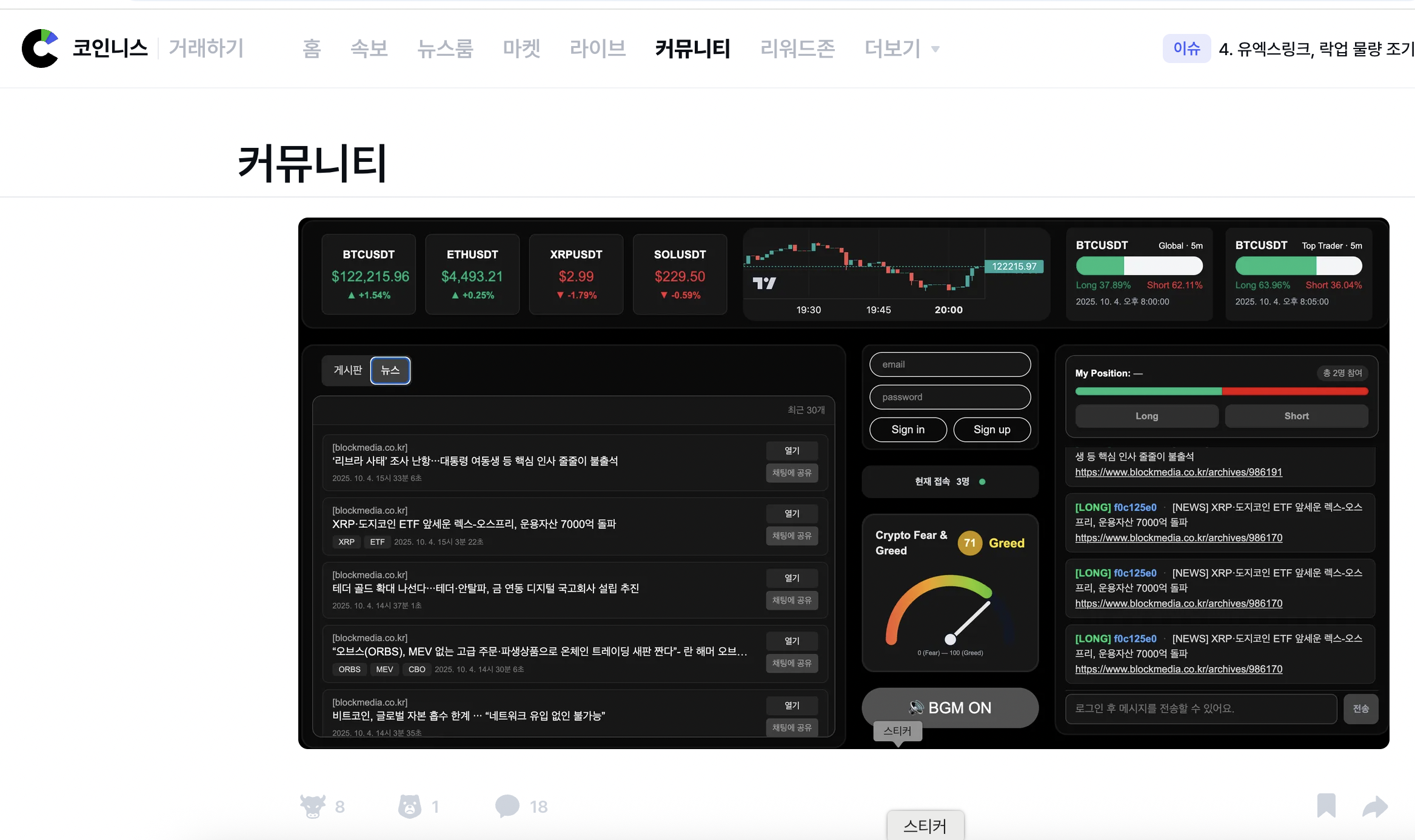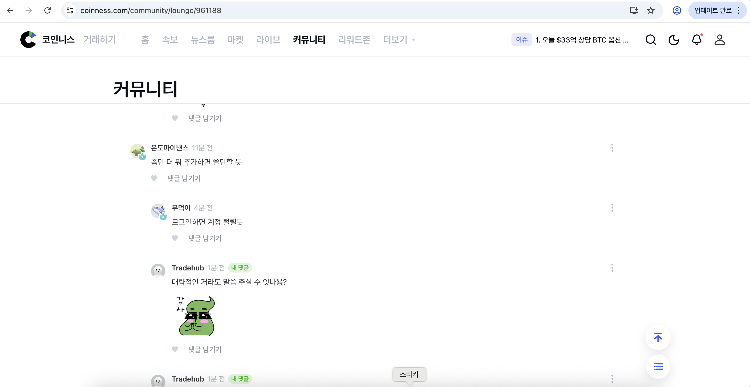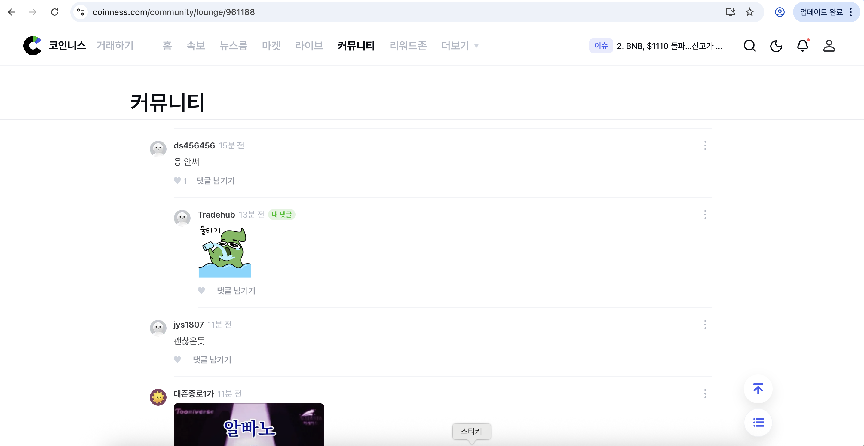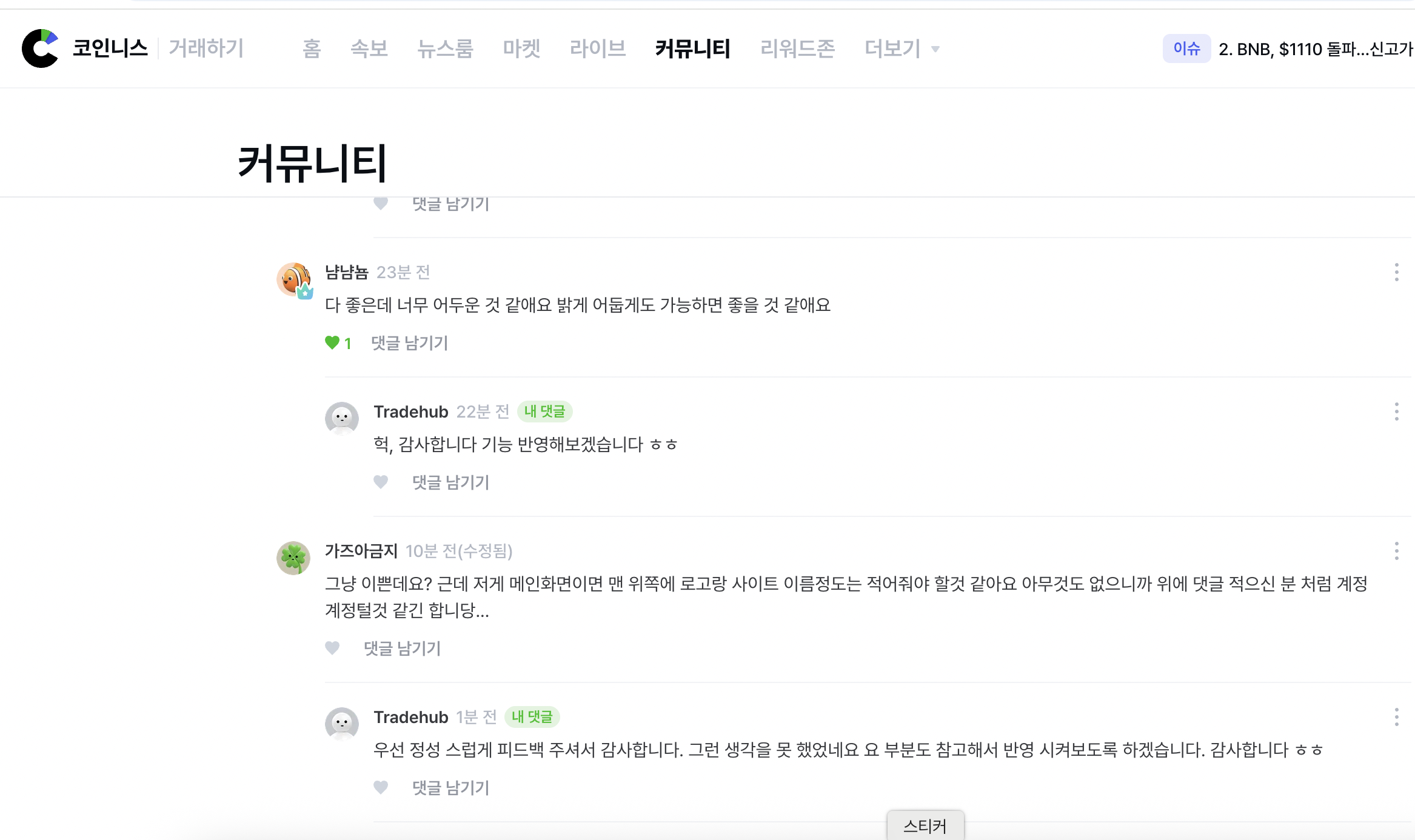 코인니스라는 메이저 급 커뮤니티에 글을 하나 올렸다.