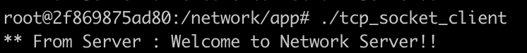 socket_client를 실행시키면 Welcome to Network Server!! 라는 메시지를 보냅니다.