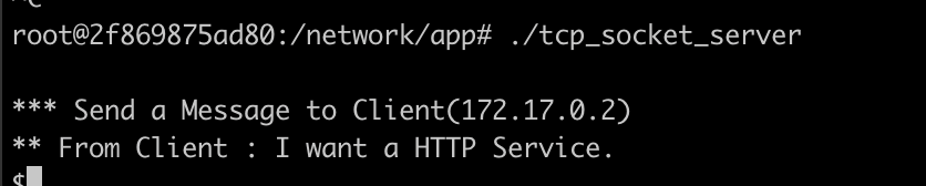 strcpy(buf, "I want a HTTP Service."); // 서버로 보낼 메시지를 복사한 후 메시지를 서버로 전송