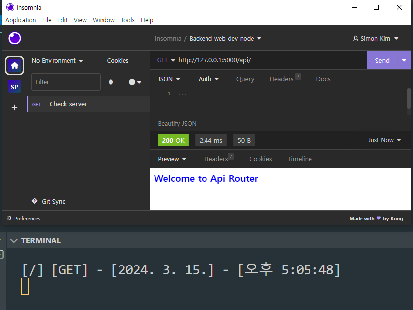 아래 처럼 코드가 구성되어있고 api 요청시 결과가 잘 나오는걸 확인할 수 있다.