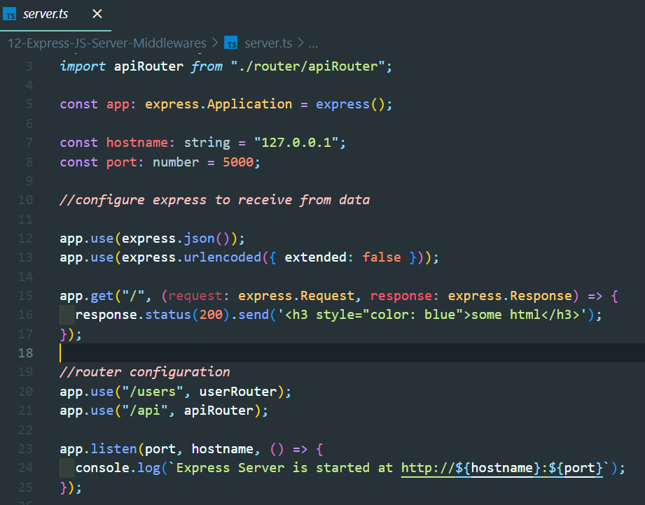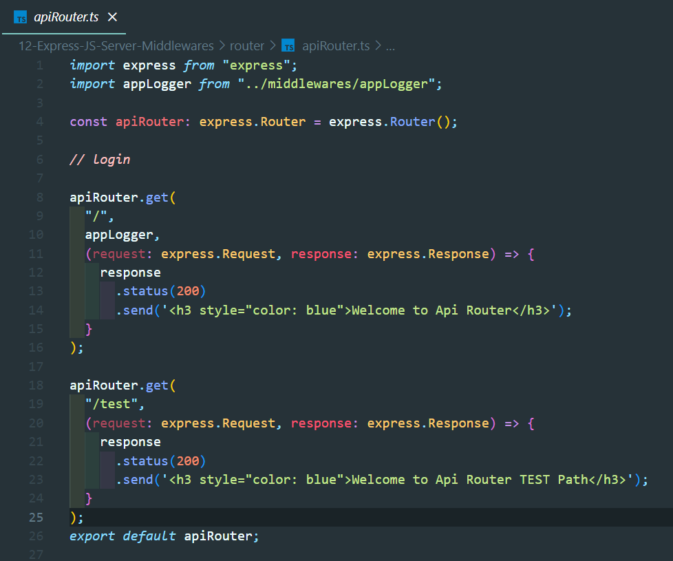 참고로 server.ts 파일에 app.use(appLogger) 코드를 작성한다면 모든 경로에 대해서 미들웨어 함수가 실행된다.