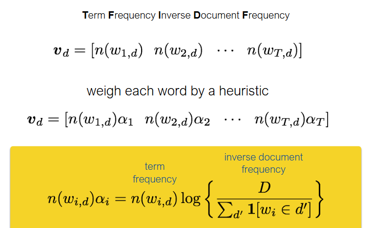 - 자주 나오는 단어는 가중치를 낮춤 (e.g., "the", "a")
