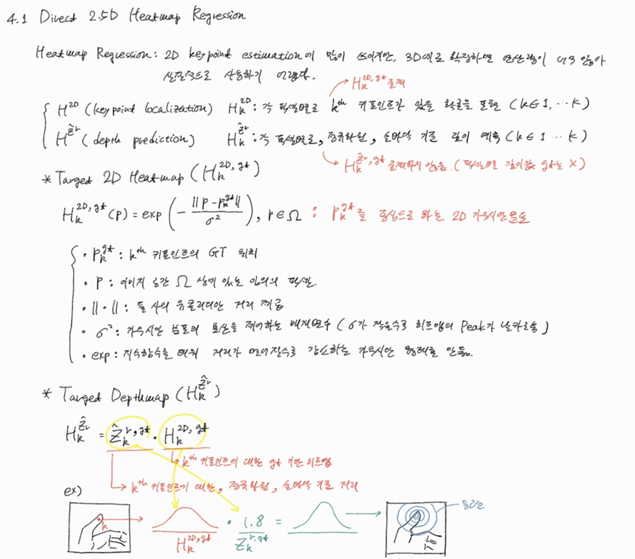 2.5D 히트맵의 특징: 이 방식의 Depth 맵은 절대적인 깊이나 스케일에 불변하며, 유사한 손 포즈에 대해 일관성을 유지하므로 CNN으로 학습하기가 더 용이합니다.