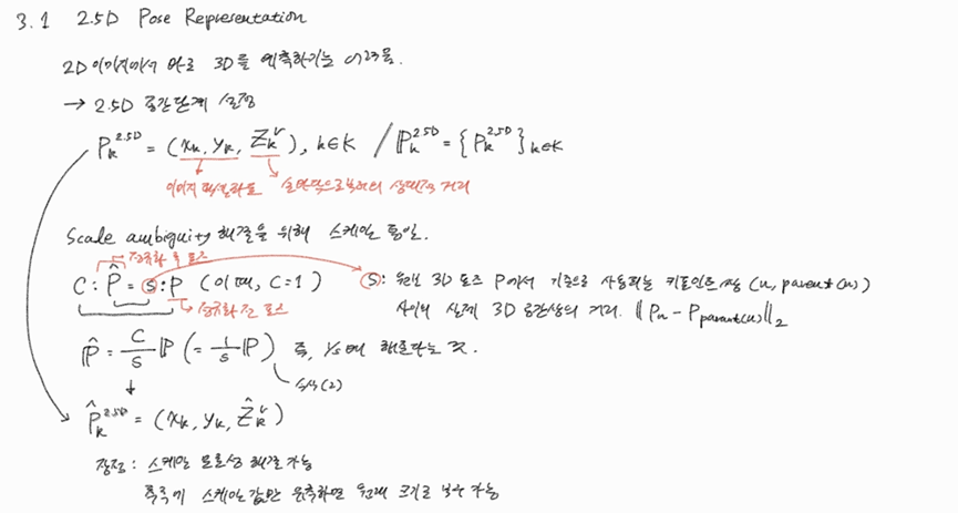 이 스케일 정규화 결과, 2.5D 포즈는 다음과 같이 정규화된 2.5D 표현 P^k2.5D가 됩니다.