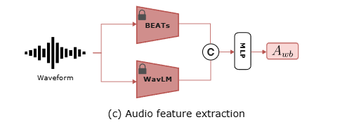 BEATs (Ab): BEATs는 비음성 사운드를 포함한 더 넓은 범위의 음향 신호에서 특징을 추출하도록 훈련되었다. 이 두 인코더의 결합은 음성뿐만 아니라 다양한 NSV를 자연스럽게 처리하는 데 기여한다.