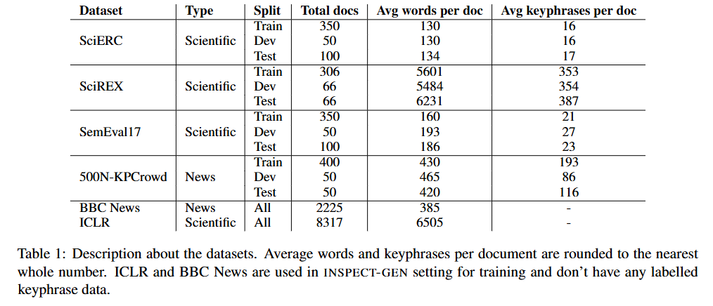- 과학 출판물과 뉴스, 두 가지 도메인에 대한 키워드 데이터셋