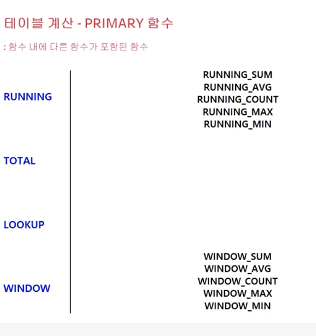 - 테이블 계산 함수 : PRIMARY 함수