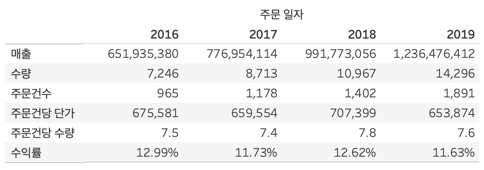 - 해당 데이터를 보면, 매출은 늘었지만 다른 지표들은 오히려 개선이 필요함.