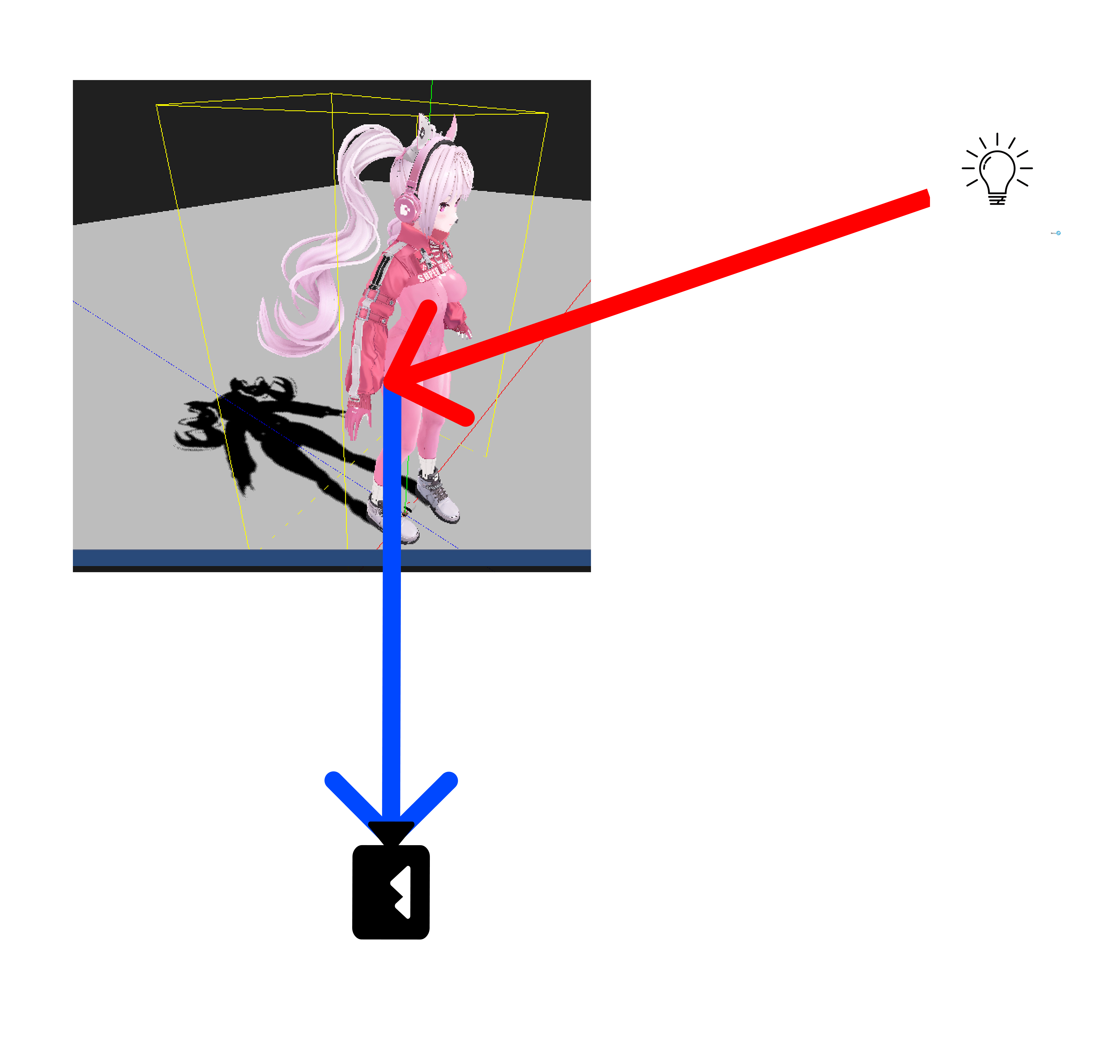 다음의 그림을 보면 광원에서의 카메라를 하나 만들어서 그 카메라는 3D 모델의 실루엣만 본다고 생각하면 됩니다.