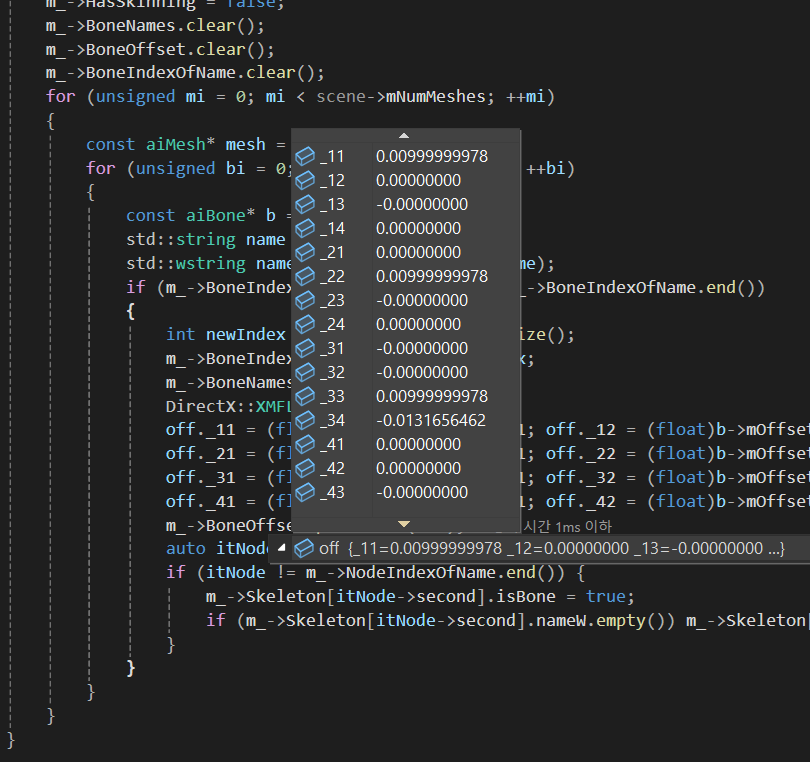 DirectX::XMMATRIX Off = DirectX::XMLoadFloat4x4(&m_->BoneOffset[bi]);