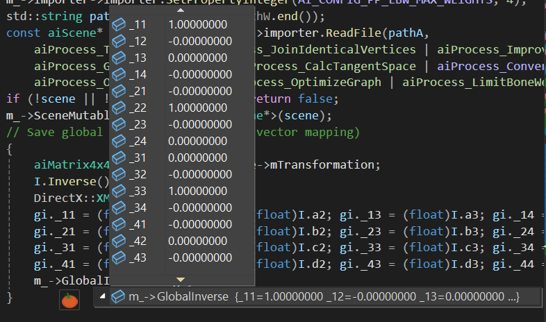 DirectX::XMMATRIX Gi = DirectX::XMLoadFloat4x4(&m_->GlobalInverse);
