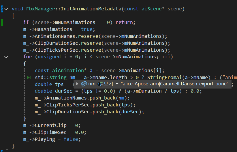 여기까지 했으면 데이터는 모두 준비가 끝났습니다. 애니메이션을 보간을 사용해 Update Tick을 계산해가며 실행하면 됩니다