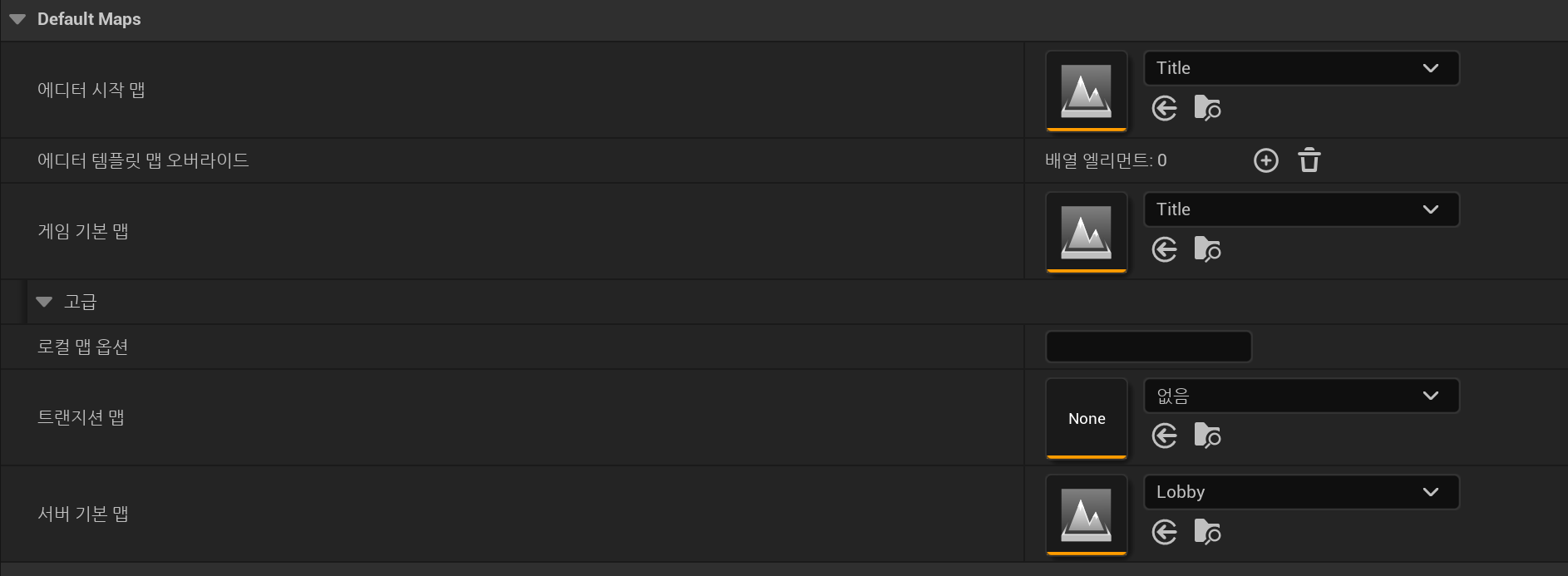 항상 궁금했던 저 서버 기본맵이라고 되어있는 부분이 바로 데디서버가 처음 실행 했을 때 열릴 레벨 입니다. 지금 스크린샷의 경우에 데디서버는 프로세스를 실행하면 Lobby 레벨을 오픈하고 대기하고 있습니다.