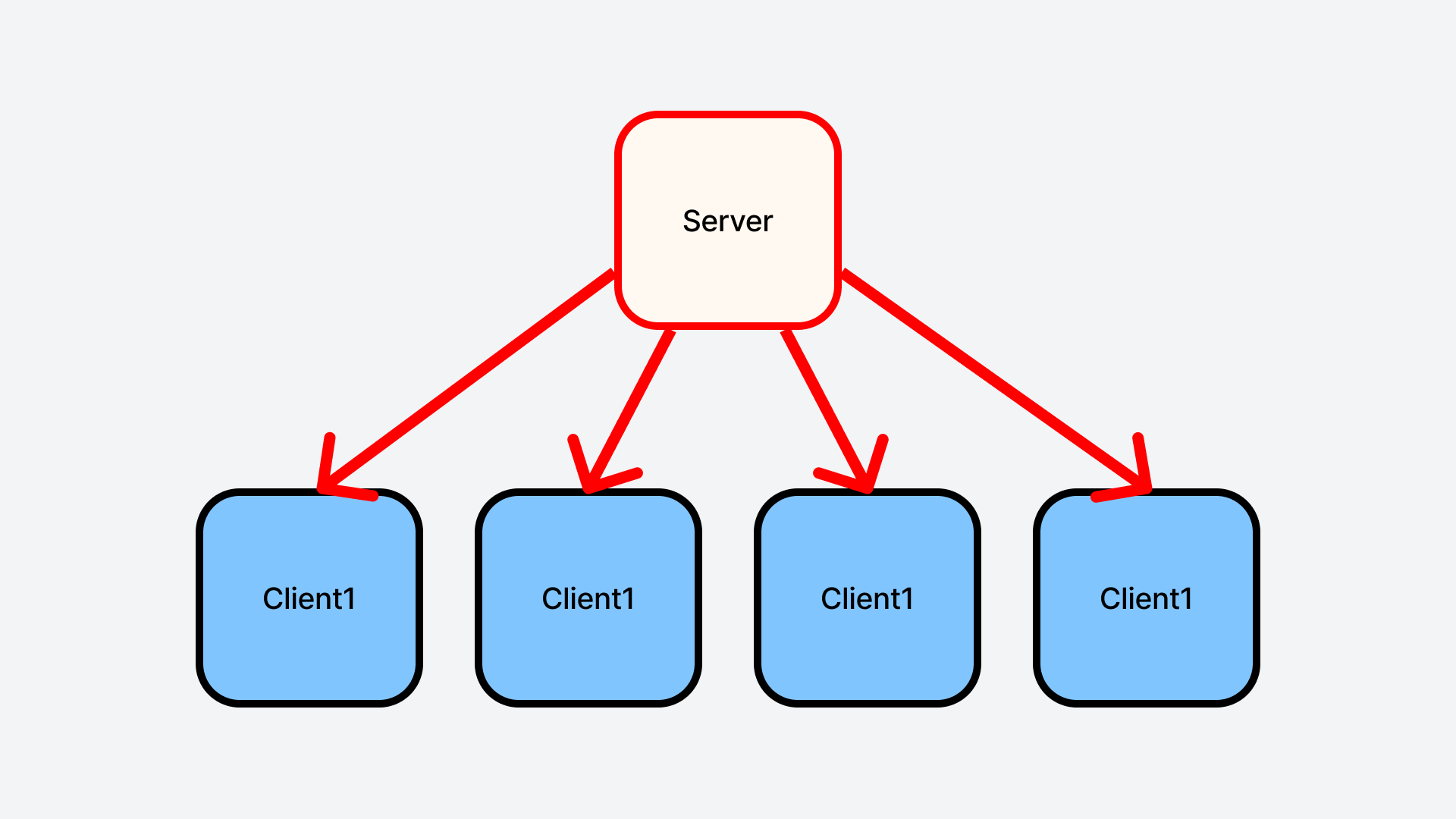 2️⃣ 서버-2 : 그리고 실행이 끝나면 Client들에게 같은 기능을 너네들도 실행해 라고 알려줍니다.