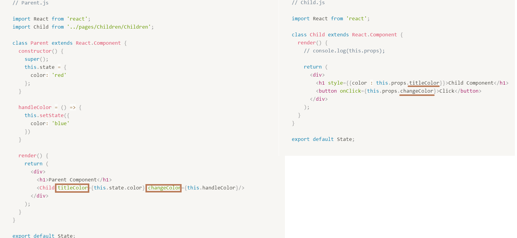 , 즉 부모 컴포넌트의 state 객체 중 color