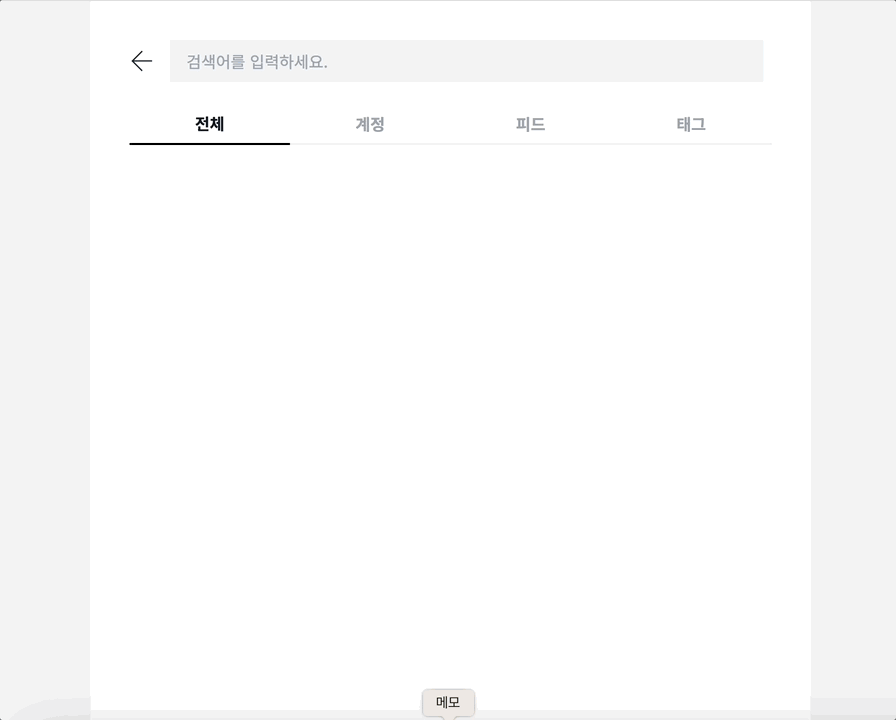 ๊ฒ์ ํ์ด์ง์๋ ์ ์ฒด/๊ณ์ /ํผ๋/ํ๊ทธ ์ ๊ฒ์ ๊ฒฐ๊ณผ๋ฅผ ๋ณด์ฌ์ฃผ๊ธฐ ์ํด์ ํญ์ผ๋ก ๊ตฌ๋ถ์ ํ์๋ค. ํ์ด์ง ์ด๋์ ์ํ๊ณ , ํญ์ผ๋ก ๊ตฌ๋ถํ์ฌ ๋ ํจ์จ์ ์ด๋ผ๊ณ ์๊ฐํด์ ๊ฐ์ธ์ ์ผ๋ก ๊ฒ์ ํ์ด์ง๋ ๋๋ฌด ๋ง์๋ ๋ค ๐